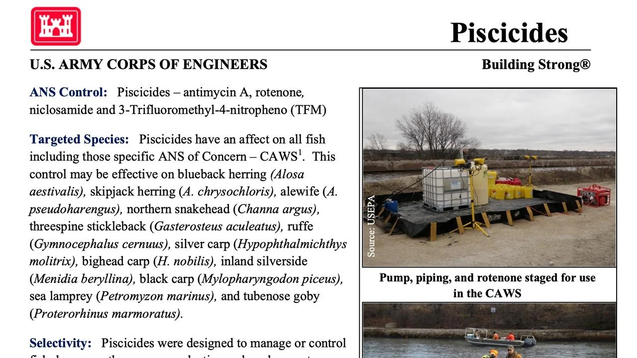This 2013 U.S. Army Corps of Engineers report provides a concise yet detailed overview of the use of piscicides—specifically antimycin A, rotenone, niclosamide, and TFM—for the control and management of invasive aquatic species. It focuses on their application in the Chicago Area Waterway System (CAWS) and other aquatic environments. The document outlines how these chemicals work, their target species (including Asian carp and sea lamprey), their relative toxicity, environmental impact, and effectiveness under varying conditions.